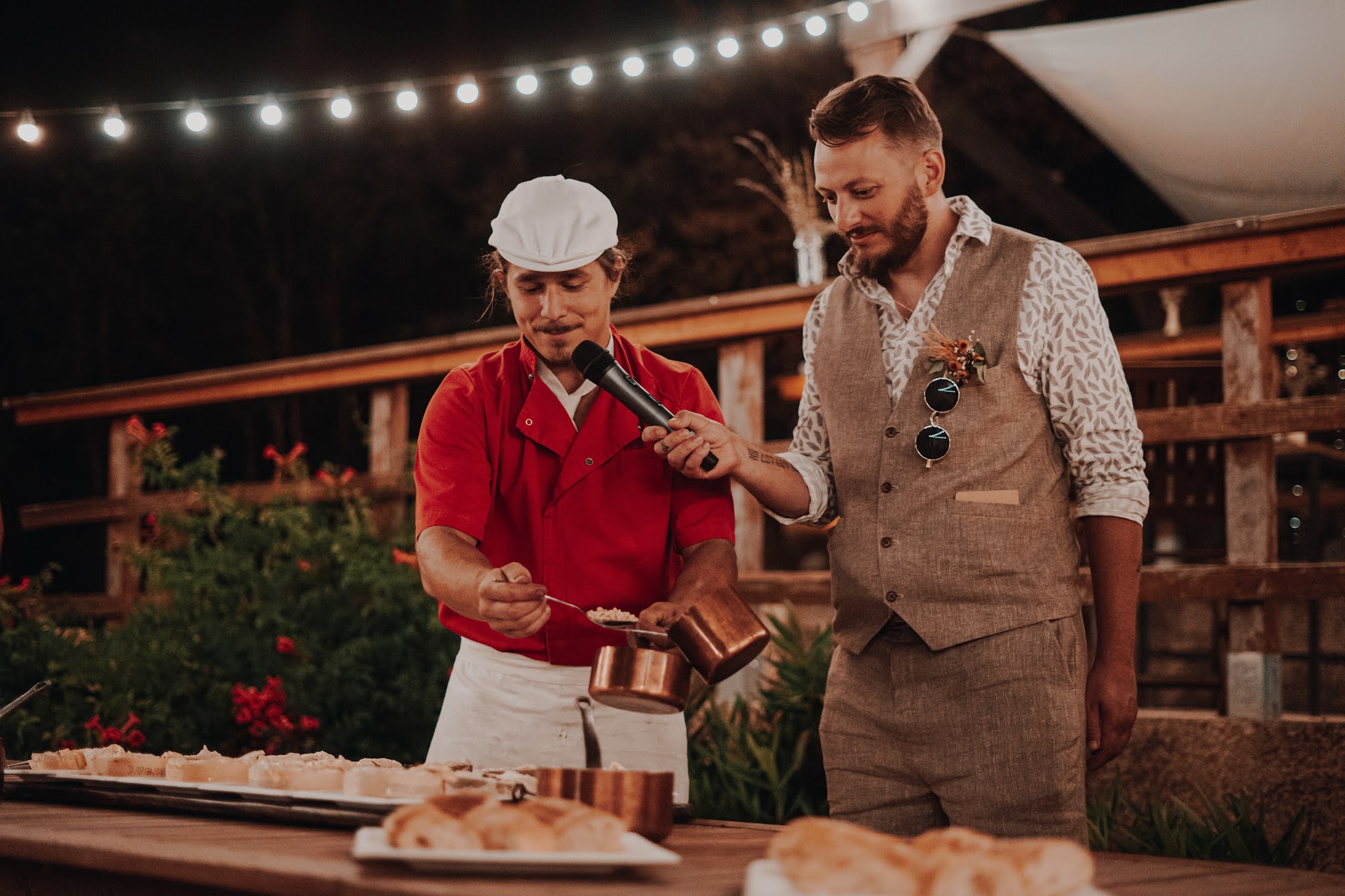 Nous avons demandé à Tony et Vincent de s’occuper du brunch de notre mariage. Un grand merci à eux, c’était super ! Nous avons passé un super moment grâce à eux, tous nos invités ont été bluffé par leur prestation et nous aussi ! Un énorme merci pour votre bonne humeur tout au long de cette journée!! À très bientôt, Anaïs et Pablo.