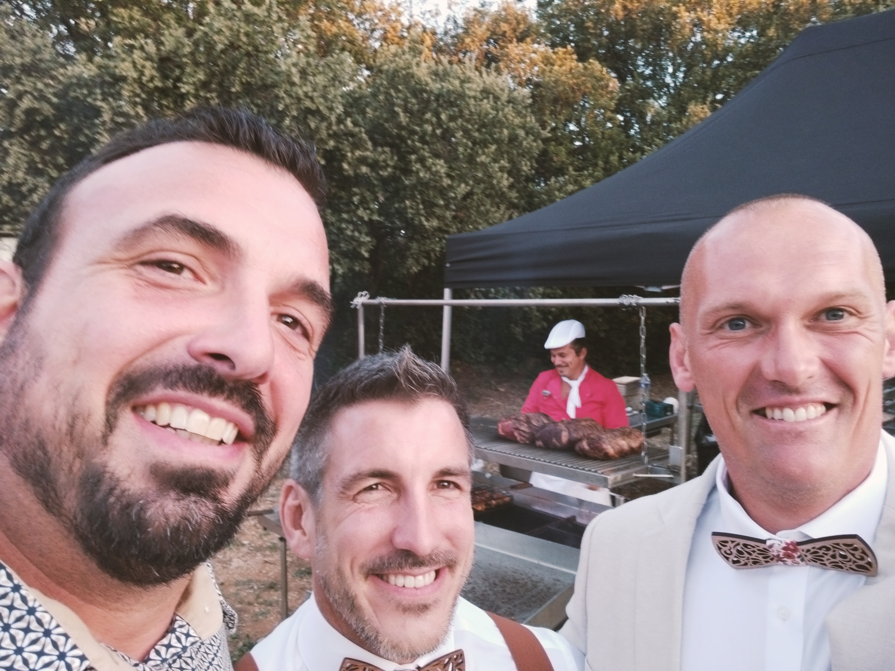 Vincent et Tony ,un fils et un père qui ont fait de notre mariage une réussite culinaire .C'était parfait du cocktail avec les tapas aux fromages coulant en passant par un repas d'une excellence inégalable . Mis à part le côté bbq qu'ils maîtrisent sur le bout des doigts ,se sont 2 personnages très attachant qui savent s'intégrer et s'imprégner de l'ambiance. A la fin de la soirée mes amis pensaient même qu'ils étaient de la famille 😁😁. Encore merci à eux et n'hésitez pas ,vous pouvez y aller les yeux fermés vous serez comblé .