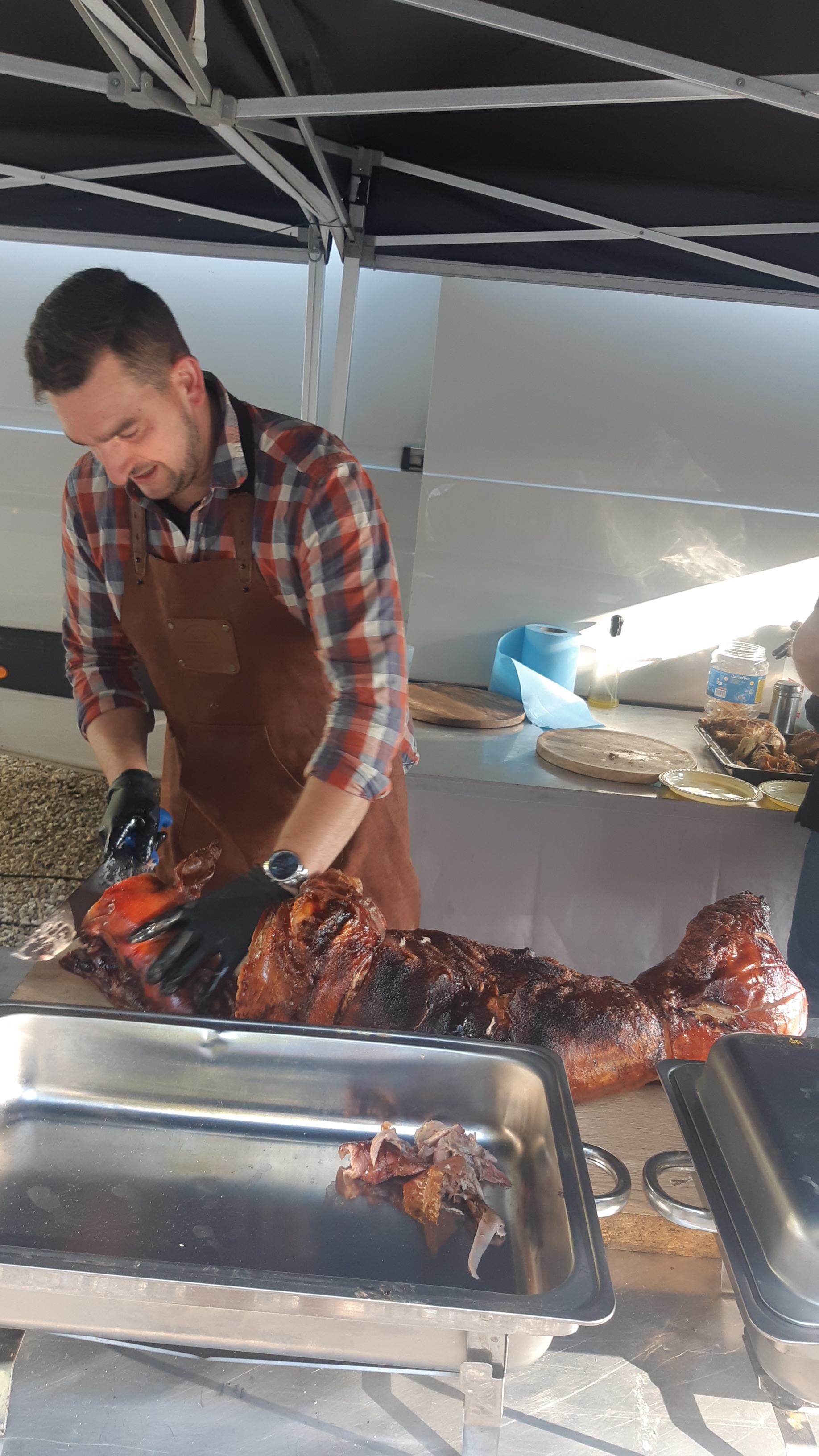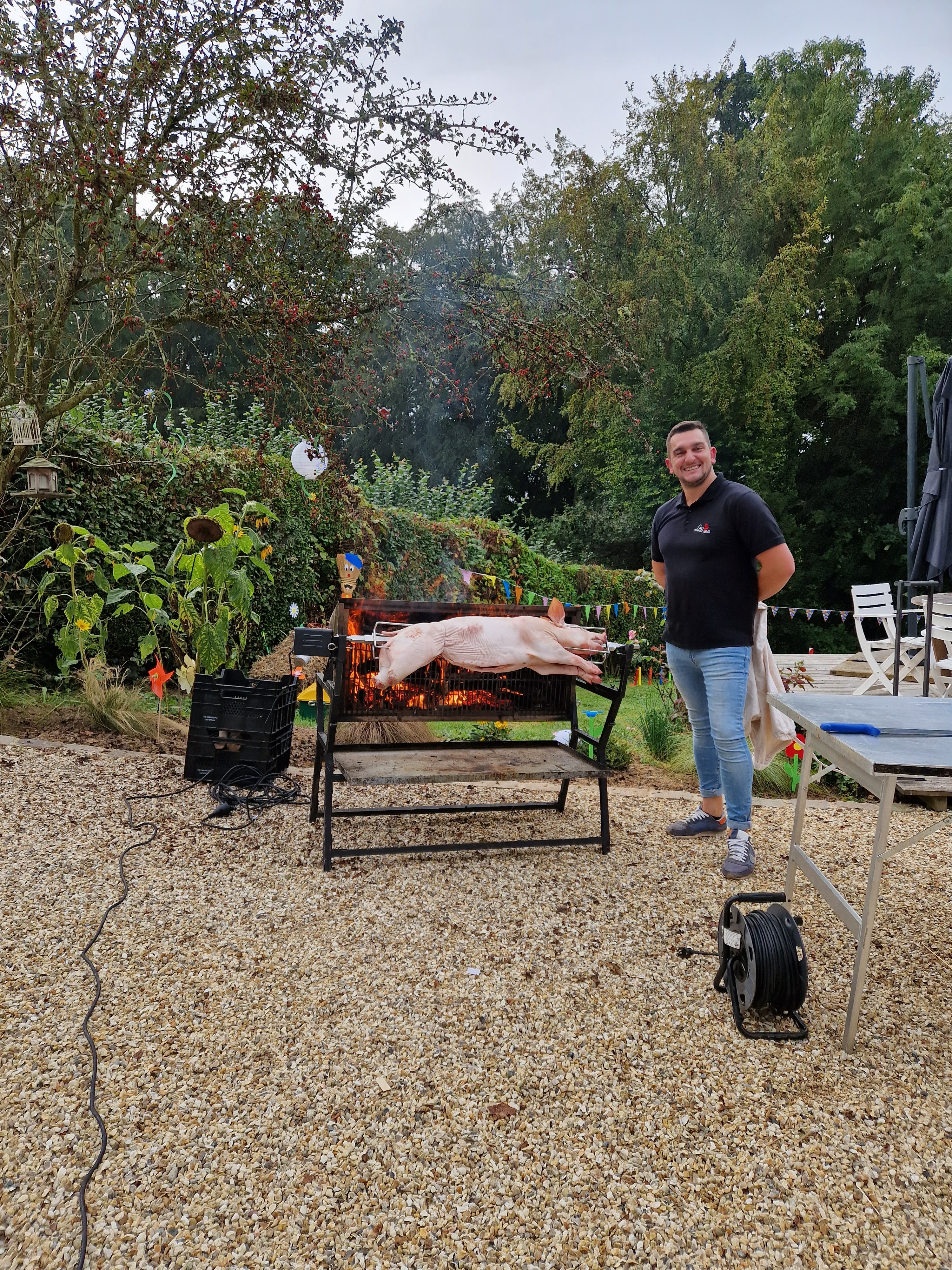 Super prestation. Équipe professionelle et très sympathique. Nous nous sommes régalés avec un cochon de lait rôti au feu de bois. Je recommande à 100% cet artisant.